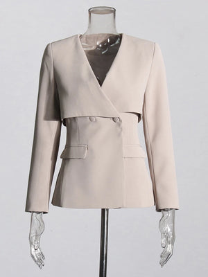 TWOTWINSTYLE Solid Loose Two Piece Sets For Women V Neck Long Sleeve Tunic Coat High Waist Wide Leg Pants Elegant Set Female New