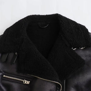 UNIZERA 2023 Autumn/Winter New Women's Wear New Fashion Casual Loose Versatile Leather and Fur One Piece Jacket Coat