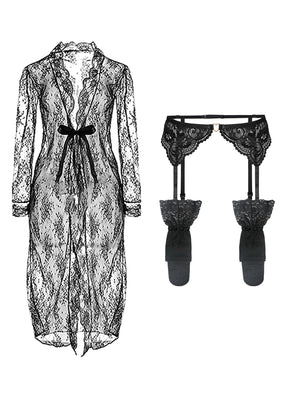 Varsbaby Lace Bra Sets for Women Non-padded Bra Panty Garter Stockings Summer Underwear Lingerie Sexy