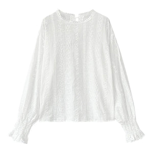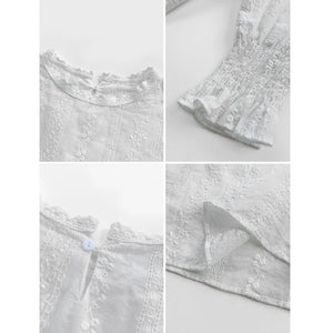 Vintage style lace shirt Flare sleeve Hollow out White blouse Casual clothing New fashion Women lace Tops Blusa