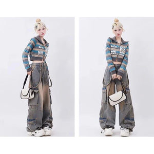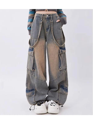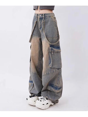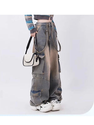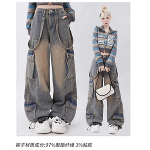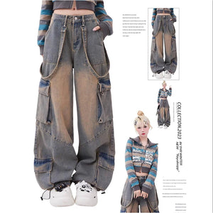 Women Blue Oversize Cargo Jeans Harajuku Vintage Baggy Y2k Denim Trouser 90s Aesthetic Wide Jean Pants 2000s Trashy Clothes