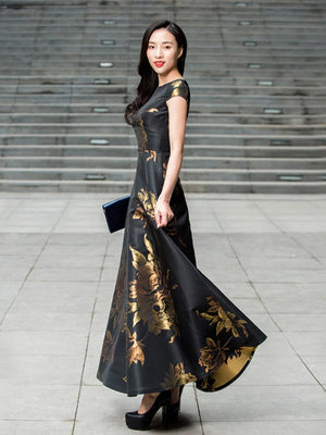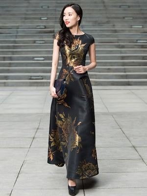 Women Fashion Vintage Elegant Dress Summer Long Maxi Dress Causul Jaquard Floral Party Clothing Vestidos Lady Office Dress