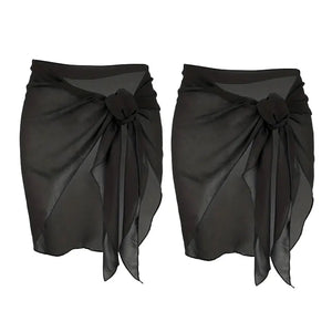Women Short Sarongs Swimsuit Coverups Beach Bikini Wrap Sheer Short Skirt Chiffon Scarf Cover Ups for Swimwear