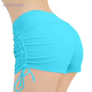 Women Swimsuit Panties Swimwear Beach Shorts High Waist Sides Adjustable Drawstring Stretch Sports Bathing Suit Tankini Bottoms