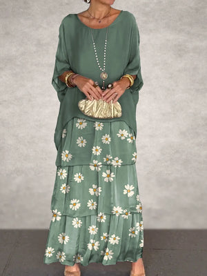 Home Women's Elegant Long Dress Fashion Round Neck Bat Sleeve Cake Dresses For Women Spring and summer Robe Looes