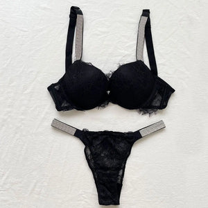 Home Women's lingerie panty set push-up bra and panties sexy lace rhinestone lettering brand design lingerie bra 2-pack