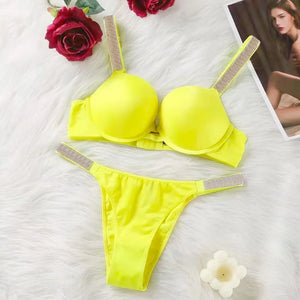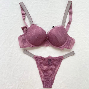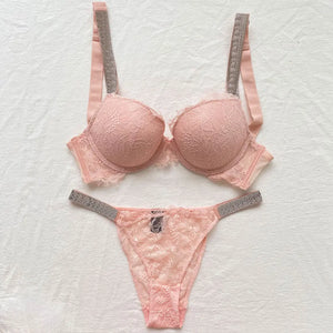 Women's lingerie panty set push-up bra and panties sexy lace rhinestone lettering brand design lingerie bra 2-pack