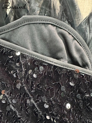 Znaiml Luxury Birthday Women’s Feathers Sequin Strapless Deep V-neck Black Bodycon Mini Dresses Sexy Club Party Night Prom Robe