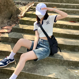 ZOENOVA Belted Shorts Jeans Women Baggy Y2K Fashion Straight Vintage Streetwear Denim Summer Loose Femme Denim Short Pants