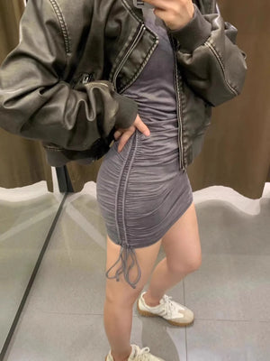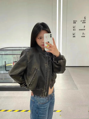 ZVRI 2024 Women's new vintage imitation leather bomber jacket coat top women's style