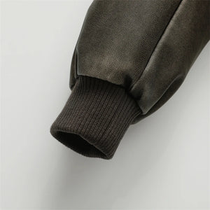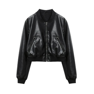 ZVRI Women's new vintage imitation leather bomber jacket coat top women's style